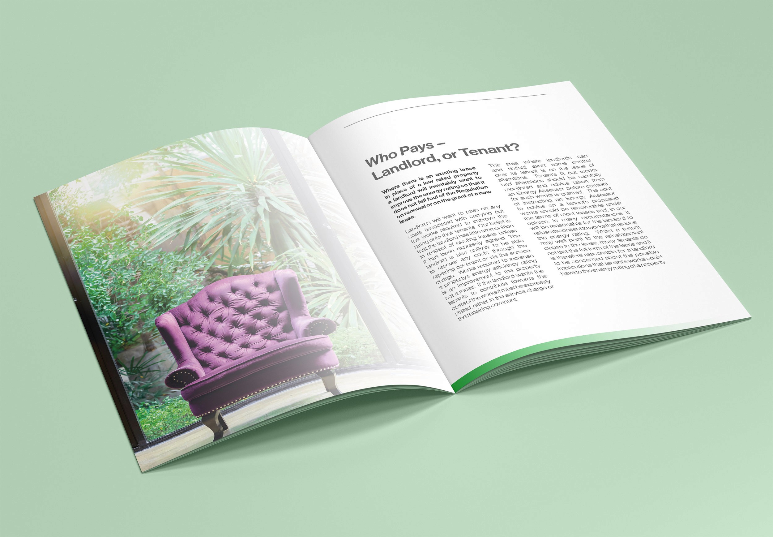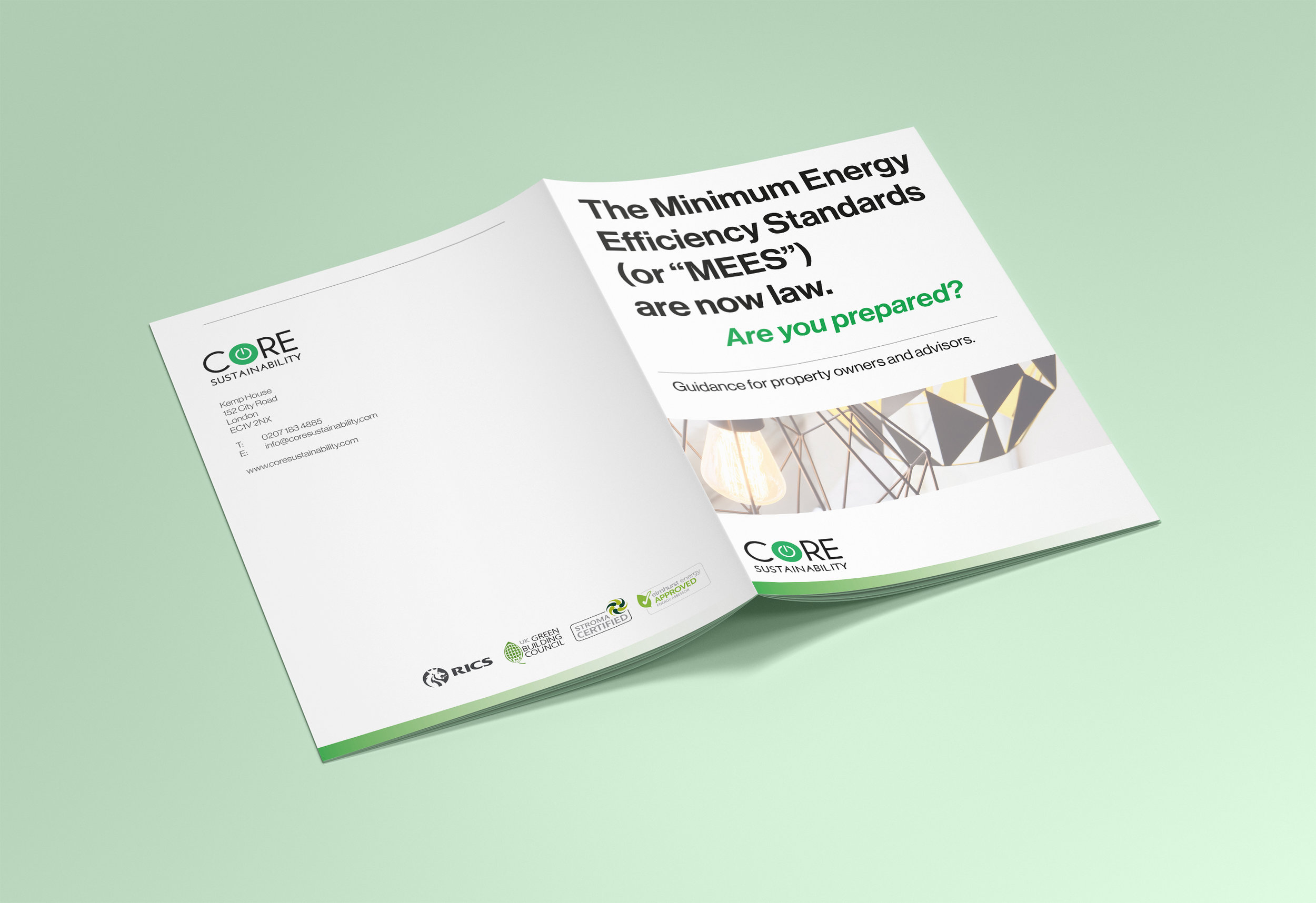 A multi-page printed guide created for Core Sustainability to explain the Minimum Energy Efficiency Standards (MEES) regulations for landlords, property owners and advisors.