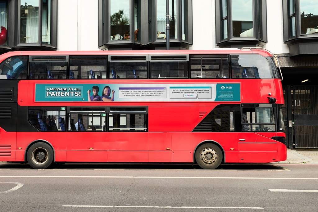 The campaign was rolled out nationally across major UK cities, appearing on buses, bus stops, and digital placements. It supported NHS vaccination messaging at scale, helping improve visibility and awareness of the HPV programme for parents and schools.